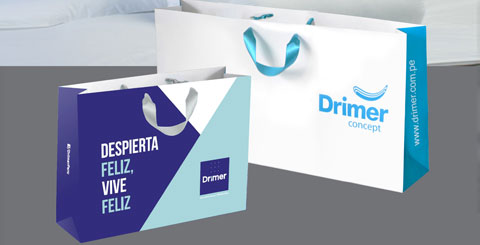 Diseñamos y fabricamos Bolsas de Papel para empresas y negocios. Contamos con moldes y medidas que comercializamos (para pedidos mÃnimos) y Si son pedidos mayores de 1,000 und. podemos hacer cualquier medida. Trabajamos con 3 tipos de material: Papel Bond de 120 grs. / Cartulina Lyner 175 grs. / Papel Couche de 200 grs hasta 300 grs. La impresión es Offset full CTP pliego entero, medio pliego, un cuarto de pliego.